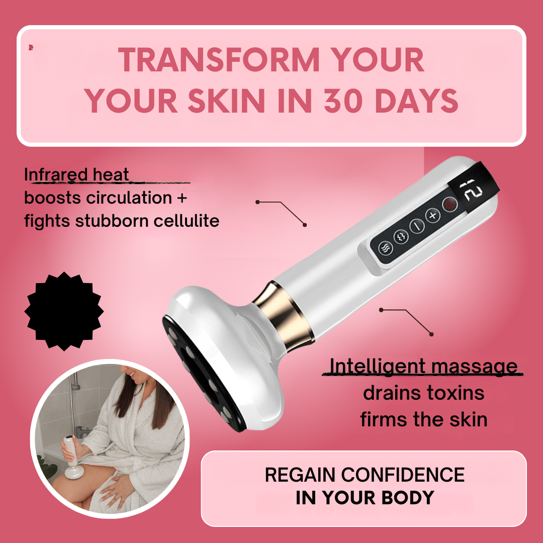 Dank seiner Tiefenmassage-Technologie wirkt dieses Gerät tiefenwirksam, um die Durchblutung zu stimulieren, die Haut zu glätten und die Dellen zu reduzieren, die mit Cellulite und Hauterschlaffung verbunden sind.